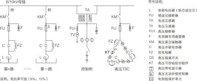 高壓TSC動(dòng)態(tài)無(wú)功補(bǔ)償裝置由主控系統(tǒng)、光纖觸發(fā)電路、高壓晶閘管閥組、脈沖變壓器、電容器、電抗器、保護(hù)單元等組成,核心原理是通過(guò)主控系統(tǒng)對(duì)系統(tǒng)運(yùn)行參數(shù)進(jìn)行檢測(cè)、分析、判斷、輸出控制指令激活光纖觸發(fā)電路,再由觸發(fā)系統(tǒng)控制晶閘管閥組的快速導(dǎo)通與開斷,進(jìn)而實(shí)現(xiàn)電容器組的投入和切除,使系統(tǒng)功率因數(shù)穩(wěn)定在設(shè)定值范圍內(nèi)。閥組投切采用過(guò)零投切方式,響應(yīng)時(shí)間在20ms以內(nèi),投切過(guò)程無(wú)涌流、沖擊,能快速跟蹤補(bǔ)償系統(tǒng)所需的無(wú)功電流。